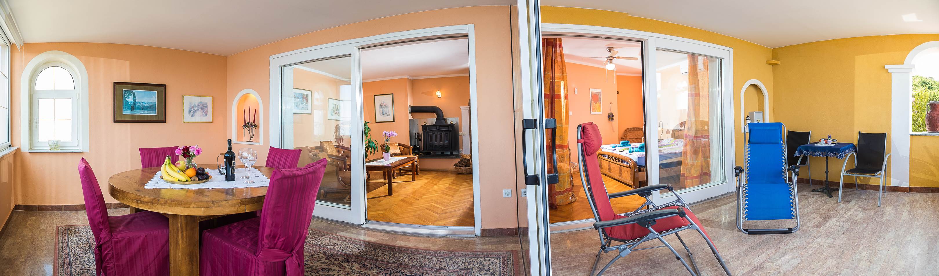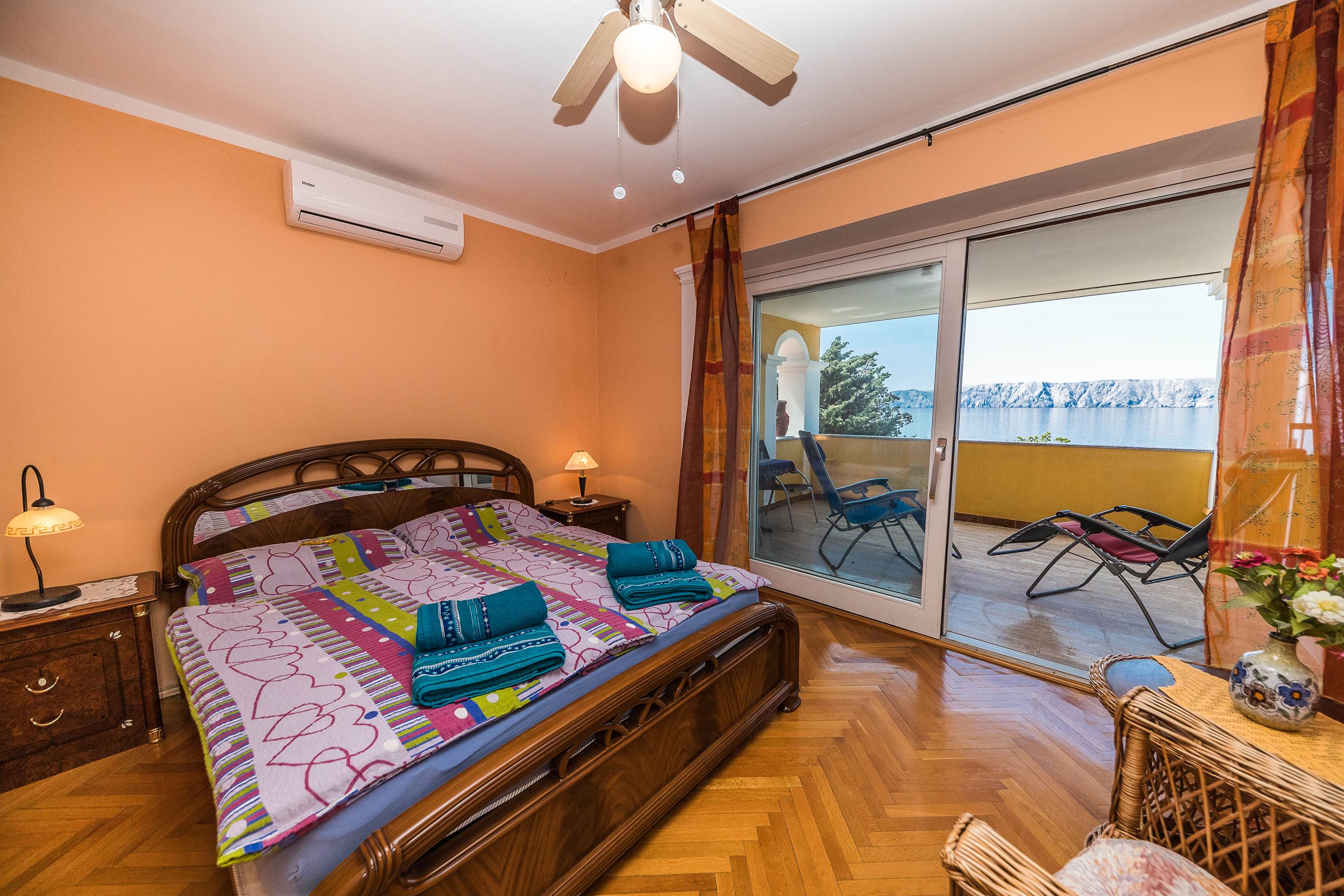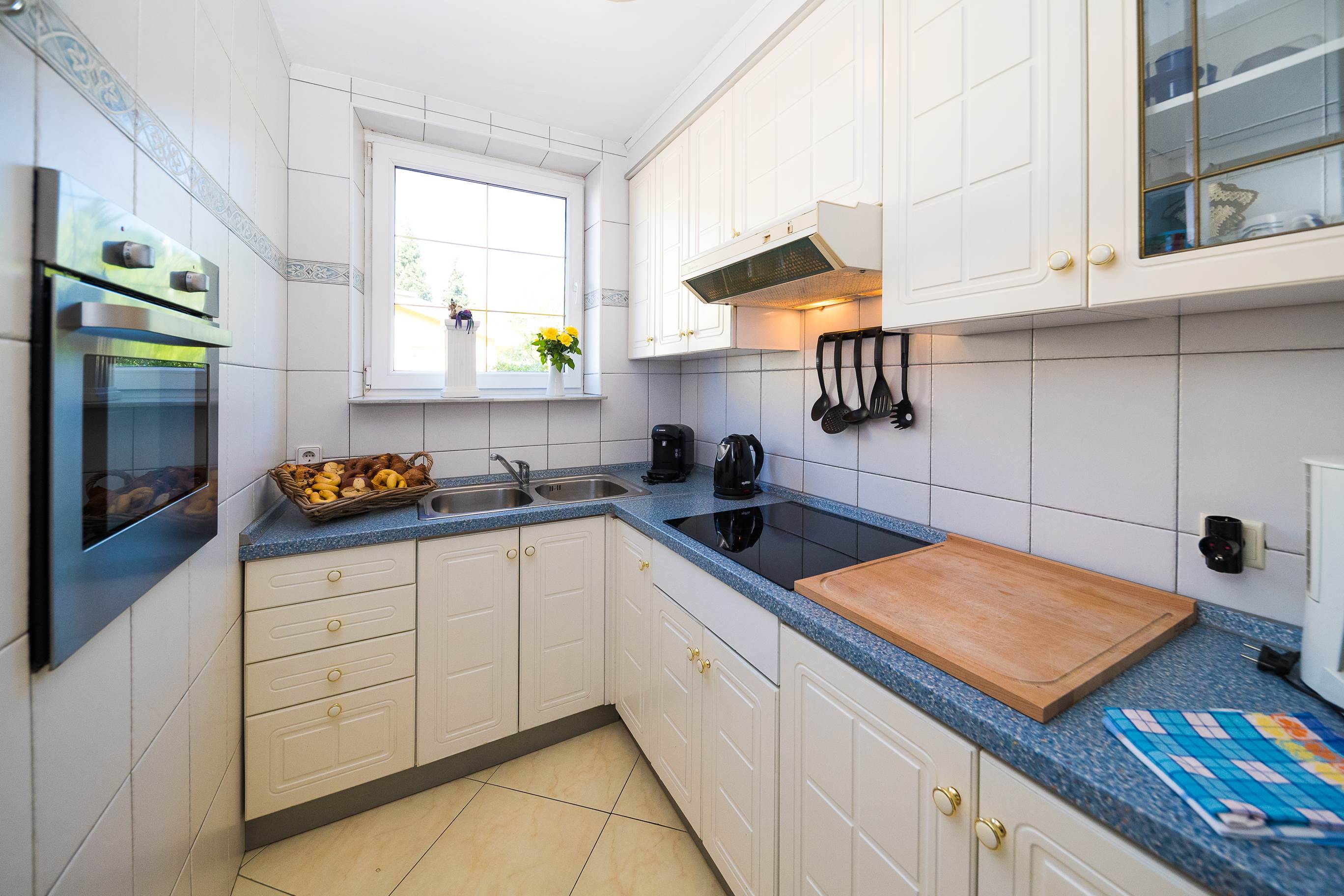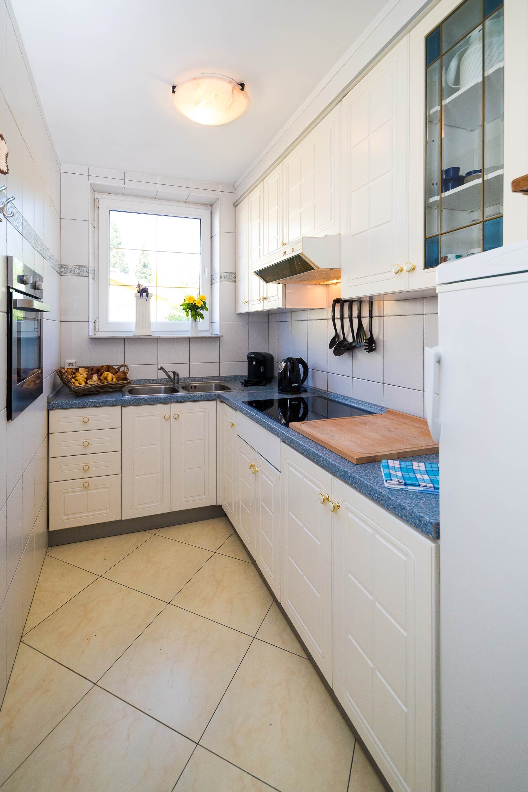 Die „Blaue Lagune“ ist ca. 90 qm groß und verfügt über 2 Schlafzimmer, ein Bad mit Eckbadewanne, Wohnzimmer, eine Küche mit 4 Platten Herd (normale Größe), Spülbecken, Kühlschrank, Wasserkocher, Töpfe, Pfannen und allen benötigten Küchenutensilien.